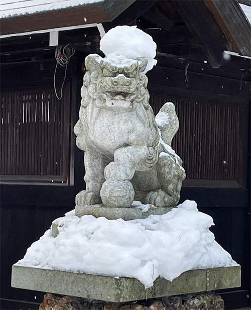 This photo shows the guardian dogs at Kotoni Shrine, right near my home. The super wet snow from the other day has stuck to their heads ever since the temperature dropped. It’s like they’re telling me to keep my head cool (lol).