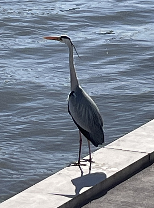 Today’s blog is about an early morning stroll along a river in Tokyo, where I suddenly discovered and encountered a heron feeding on the water. My early morning walks in Sapporo are also enjoyable, with encounters with animals around the human world, such as Ezo squirrels and mandarin ducks, but as expected in the big city of Tokyo. As well as the above-mentioned encounters between humans, I also had encounters with ‘Mother Nature’ right in front of me, as you can see in the photo.