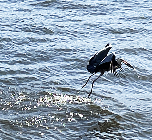 北海道から来てボーッとしている人間とは違って、かれらは弱肉強食の厳しい生存競争のただ中をまっとうに生き抜いている。獲物の魚を発見した途端、間髪を入れずに勇躍飛翔し、その様子を追うわたしの目線移動速度をはるかに超えるスピードタイミングでみごとに獲物を獲得していた!