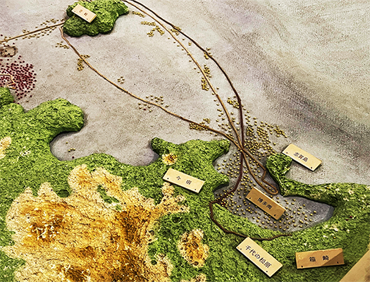 The photo above shows the aerial view of Hakata and Hakata Bay introduced yesterday, and a diorama of the ‘invasion’ of Yuan ships, which we were able to see at the Yuan Pirates Historical Museum for the first time. This situation is from the first invasion, the “Bun’ei no Yaku” in 1274, when Japanese society experienced this kind of devastation in the 13th century.