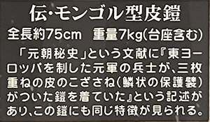 そして、その高断熱高武装「戦闘衣」革命によってユーラシア大陸を制圧した元軍が、海洋国家ニッポンを襲撃したことになる。この戦闘衣は同時に重厚な鉄板の利用で、刀での攻撃にも矢による殺傷攻撃にも抜群の性能を誇っていた。