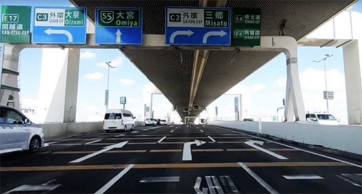 However, I encountered a traffic light for the first time on the Metropolitan Expressway, which had become a part of my daily routine. I had been warned in advance that there was an intersection, and I thought, “What the heck? I was just amazed, but the wait was quite long, so I took this photo with my cell phone. The photo below is a one-shot of the Metropolitan Expressway “intersection” from a youtube video program.