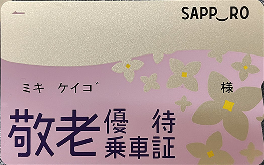 The photo shows the “Senior Citizen Discount Pass” for public transportation in Sapporo City, which my wife arranged for me.