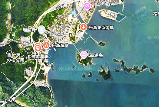 Basho traveled along the Oku no Hosomichi as a “journey to visit places mentioned in poems,” but for some reason, he left no poems about Matsushima. (The photo is unrelated. It shows yesterday’s “fish scale clouds” in Sapporo and Google Maps’ “Matsushima.”)