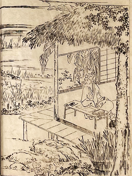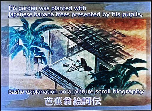 The name of this house, Basho-an, derives from the plant “basho.” The photo caption mentioned “Japanese banana,” but it’s a related plant species that doesn’t bear the fruit bananas. While the name ‘Bashō’ might make one imagine plants like “Wada-cha,” this “E-kotoba” illustration suggests he might have been a totally “cool” and outrageous Edo-period dude.