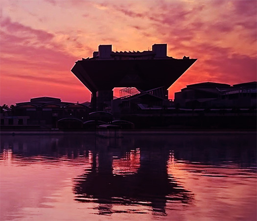 現代建築の中で、たぶんいちばん多くそこに行っているスポットと思えるのが「東京ビッグサイト」。いろいろな業界での全国イベントの会場として、北海道人としても参集することが多い。上の写真は、その東京ビッグサイトの夕景の瞬間を、日本建築伝統の「水面の映り込み」とのバランスを考えて捉えてみたもの。