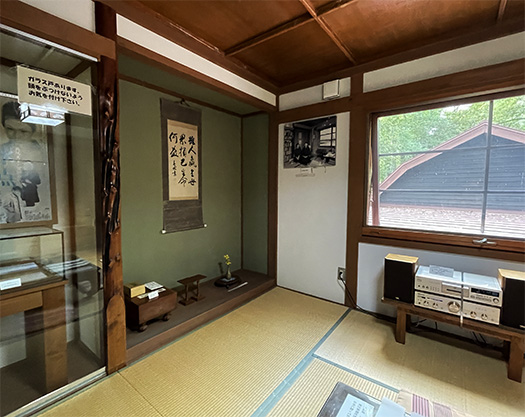 As one experiment, I examined a monochrome photograph displayed at the memorial hall mentioned in the title—where photography was permitted—and the “space” where the author’s writing process was recreated as a scene.