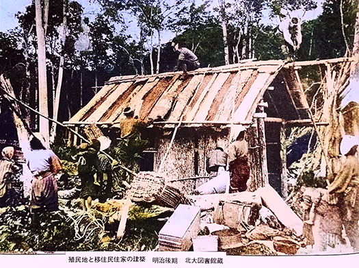 写真は北海道大学図書館所蔵の「殖民地と移住民住家の建築」と題された記録写真と、その当時の空気感に迫りたいということからモノクロ画像のカラー化を試みた画像&元画像。