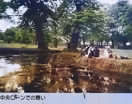 こちらは札幌の古写真でこの出水箇所から広がっている広場〔中央ローン)での人びとの様子と、一昨日の散策時点の風景。モノクロ画像をカラー化させたけれど、時間経過がゆったりとしている様子で、たのしい。こういう「なんでもない風景」が札幌には広がっていたのでしょう。