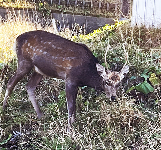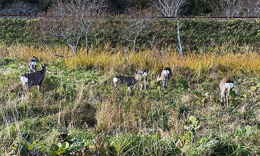 The photo shows a deer we encountered in the Misaki area of Ochiishi, Nemuro City. While bear sightings and incidents in human areas are reported nationwide, during this drive tour we also encountered horses and cows in various places, amidst natural wildlife and ranch scenery. Fortunately, our only encounter with a brown bear was with a stuffed specimen at a museum facility in the Daisetsuzan mountain range (phew).