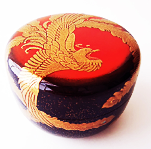 Gathering information from the “maker’s mark” known as Hozan-zukuri, I came across photos of lacquerware like the one in the second image. It seems these items are traded in antique markets for such goods. Well, I wanted more information, and since painting and art are all about “suki” (a refined aesthetic sensibility), I became interested in the design expression of this crane.
