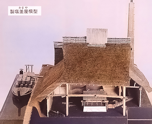 そしてその下は、そうした塩田から集めた濃度の高い塩水から窯で製塩していく窯場の資料写真。