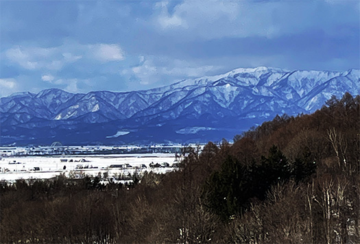 It doesn’t have any particularly striking features, but this time of year, the look of the snow-covered peaks really resonates with me. That said, memories of actually spending time with this scenery are incredibly rare in my life. I vaguely recall visiting my mother’s family farmhouse in Mikasa City during my early elementary school years, staring blankly across the snowfields. I don’t even remember the name of the mountains. They were in the direction of Shokanbetsu-dake, though…