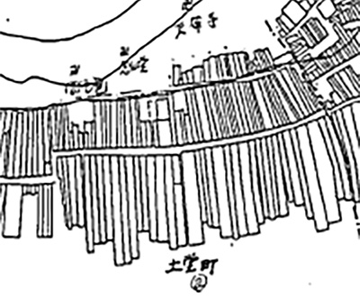 上図は広島大学の中山富廣先生の論文で「近世初期の尾道における商品流通」をご案内いただいた。そこに「尾道阿賀屋」の人物名が出ていた。江戸期瀬戸内海交易の心臓部・尾道では、商家による「自治組織」が運営され、その名簿のなかに出ていた次第。下は間口が間口が狭く奥行きが長い江戸期「商都・尾道」の街割り図。