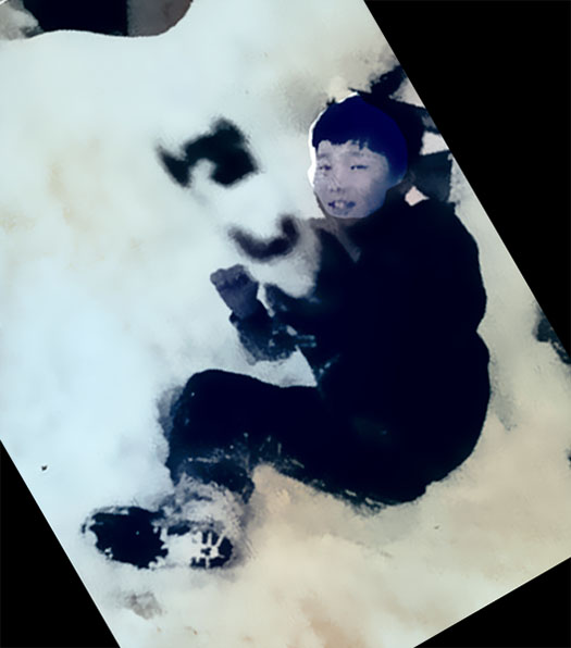 ~The photo is from my boyhood, probably around the lower grades of elementary school. Children in snow country play a cruel game called “snow burial.” This photo happened to capture the expression of that game. It’s inexplicably nostalgic (laugh).
