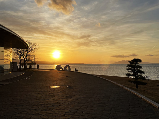 Since I started visiting the Sanyo region often, I’ve been utterly captivated by the sunset over Lake Shinji in Sanin, Matsue, as seen in the photo. During those sunset hours, it feels like my heart’s “pulse” is being drawn in, deeply settling within me.