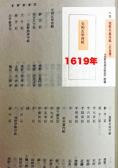 最近は「地域史」研究が盛んで浅野藩と重なる「広島県史」を図書館ネットワークで遠距離借り上げして熟読している。特に調べたかったのが「浅野長晟侍帳」という藩公式の家臣団記録。浅野長晟は紀州から広島に転封したときの藩主であり、この「侍帳」は1619年に記録された。