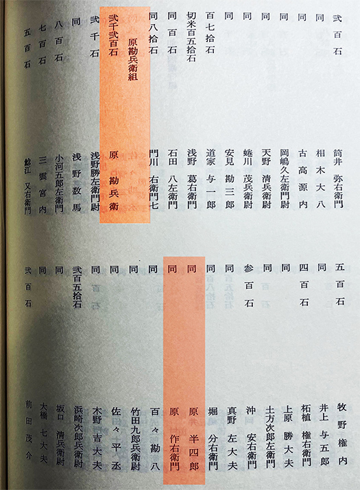 そこに「原 勘兵衛」という重臣の名前を確認することができた。