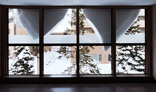 降雪時の風向・降雪量・南北方向の要因が複雑に絡み合い、自然はふしぎな造形をみせる。