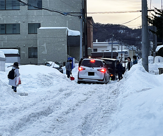 Ultimately, only the snow removal done by the owners of detached houses at the front of each road can be relied upon. Areas around apartment buildings and condominiums are rarely cleared. The stuck vehicles you see were on the road in front of a certain apartment complex.