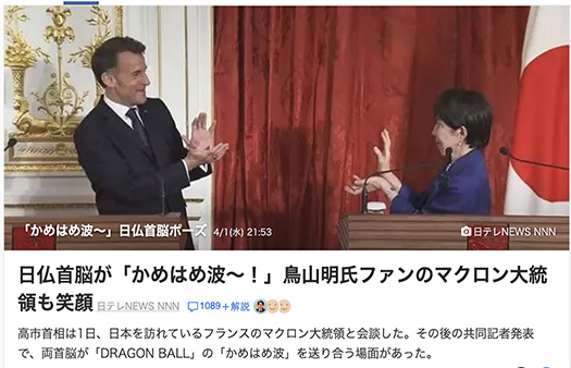 「かめはめ波」日本人なら誰でも知っている仮想世界の必殺技が、世界の外交の場で「共通言語化」されてコミュニケーションされることがユニークだと思えた。マクロンさん日本文化へのシンパシー、ありがとうとニッコリ応えたくなる。人間の内心はみんな単純なんですよね。