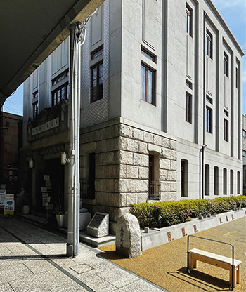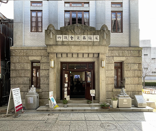 Architecturally speaking, the Onomichi Chamber of Commerce and Industry building was constructed in 1924 (Taisho 13). As reported in the February 24 issue of the local newspaper *Geibi Nichinichi Shimbun* at the time, “This new building stands majestically at 605 Todo-cho, the transportation hub of Onomichi. Its style is an extremely innovative blend of Modernism and Secessionism…” ~Note: Secession refers to the “Secessionist” art movement that emerged in Germany and Austria from the late 19th to early 20th centuries~