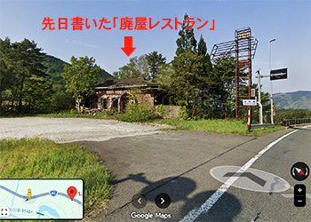 で、この周辺で気付いたのはこのブログで書いた「廃屋レストラン」。なんとなくこの廃屋が知人が言っていた〝峠の茶屋〟の残骸だったのではないかと想像してしまっていた。
