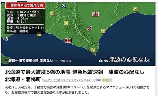 So, due to the “warning” I received from the hot spring, I went to bed around 4:00 p.m. after a late lunch. …Usually, I wake up once after 5–6 hours and feel refreshed, but last night was a total bust—I didn’t feel refreshed at all. I finally started to feel somewhat better just before 5:00, so I got up and was tidying up the house when my smartphone started screaming with an “Emergency Earthquake Alert.”